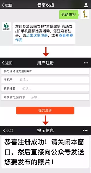 1、活動(dòng)期間,參賽選手每天通過(guò)【云南農(nóng)擔(dān)】微信“影動(dòng)農(nóng)擔(dān)”平臺(tái)投稿。