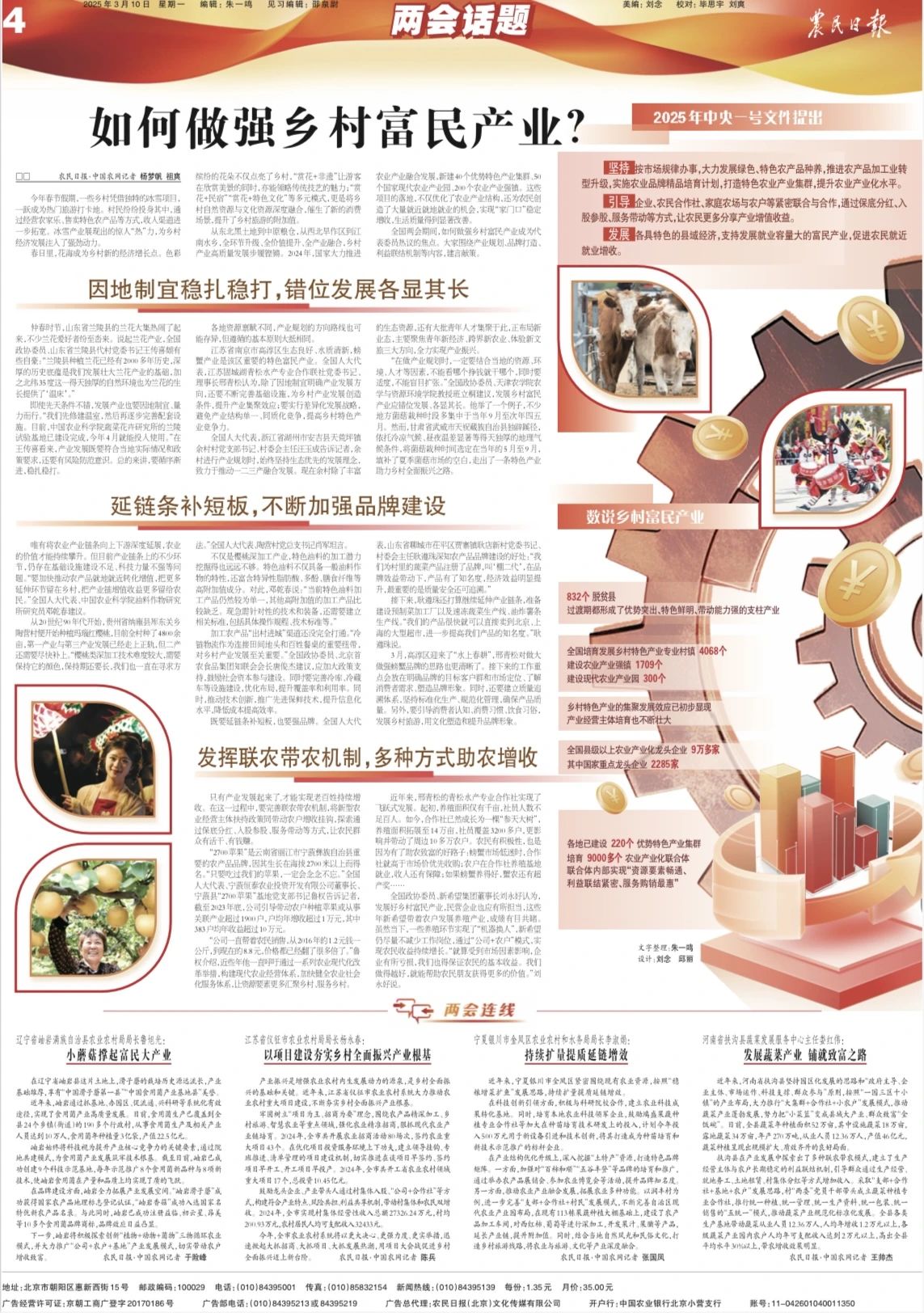 全國兩會期間,如何做強(qiáng)鄉(xiāng)村富民產(chǎn)業(yè)成為代表委員熱議的焦點(diǎn)。大家圍繞產(chǎn)業(yè)規(guī)劃、品牌打造、利益聯(lián)結(jié)機(jī)制等內(nèi)容,建言獻(xiàn)策。