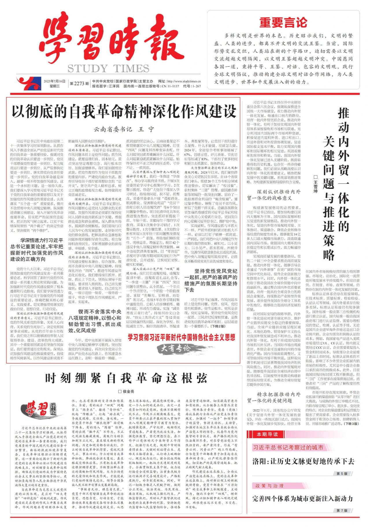 云南省委書記王寧署名文章