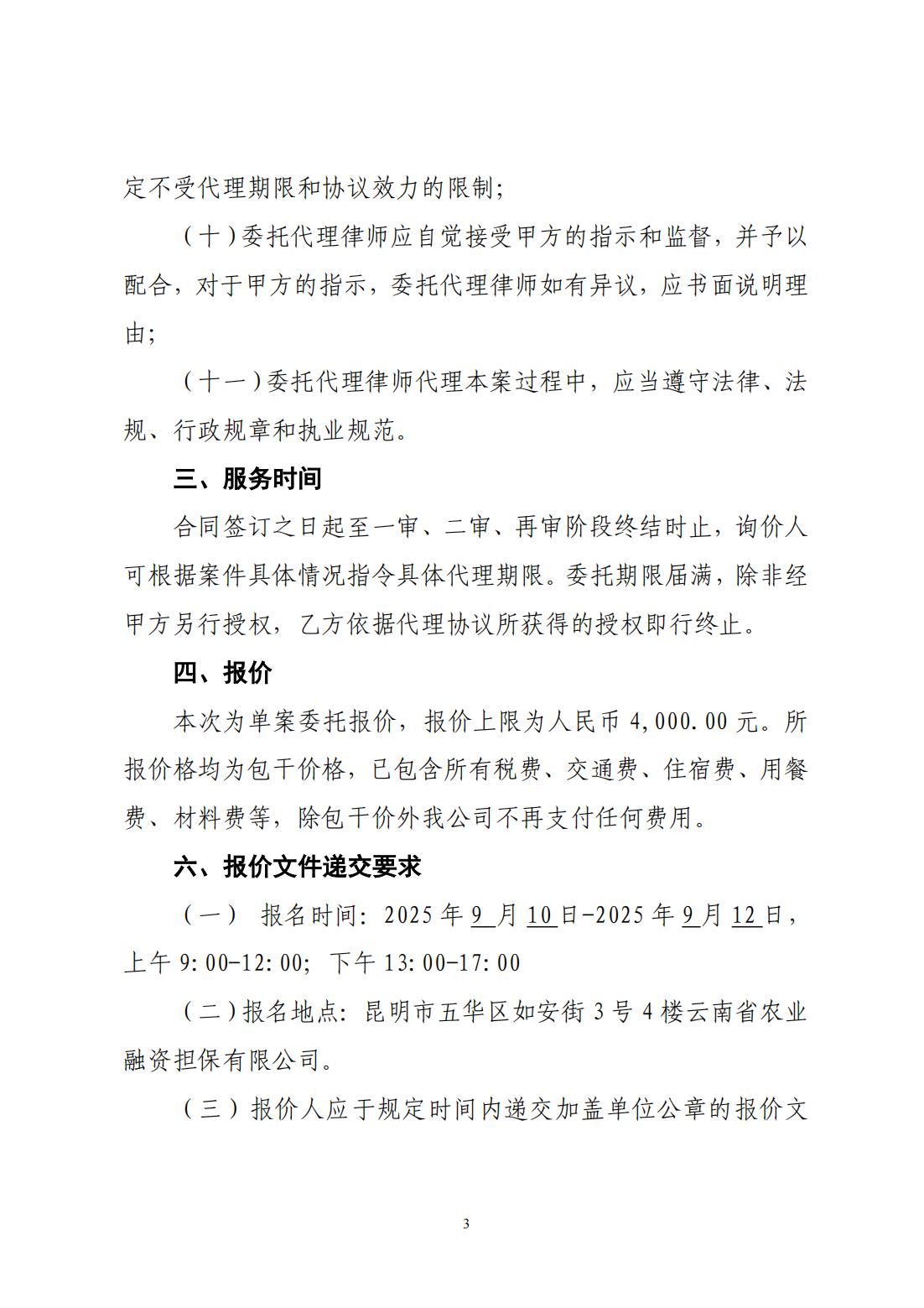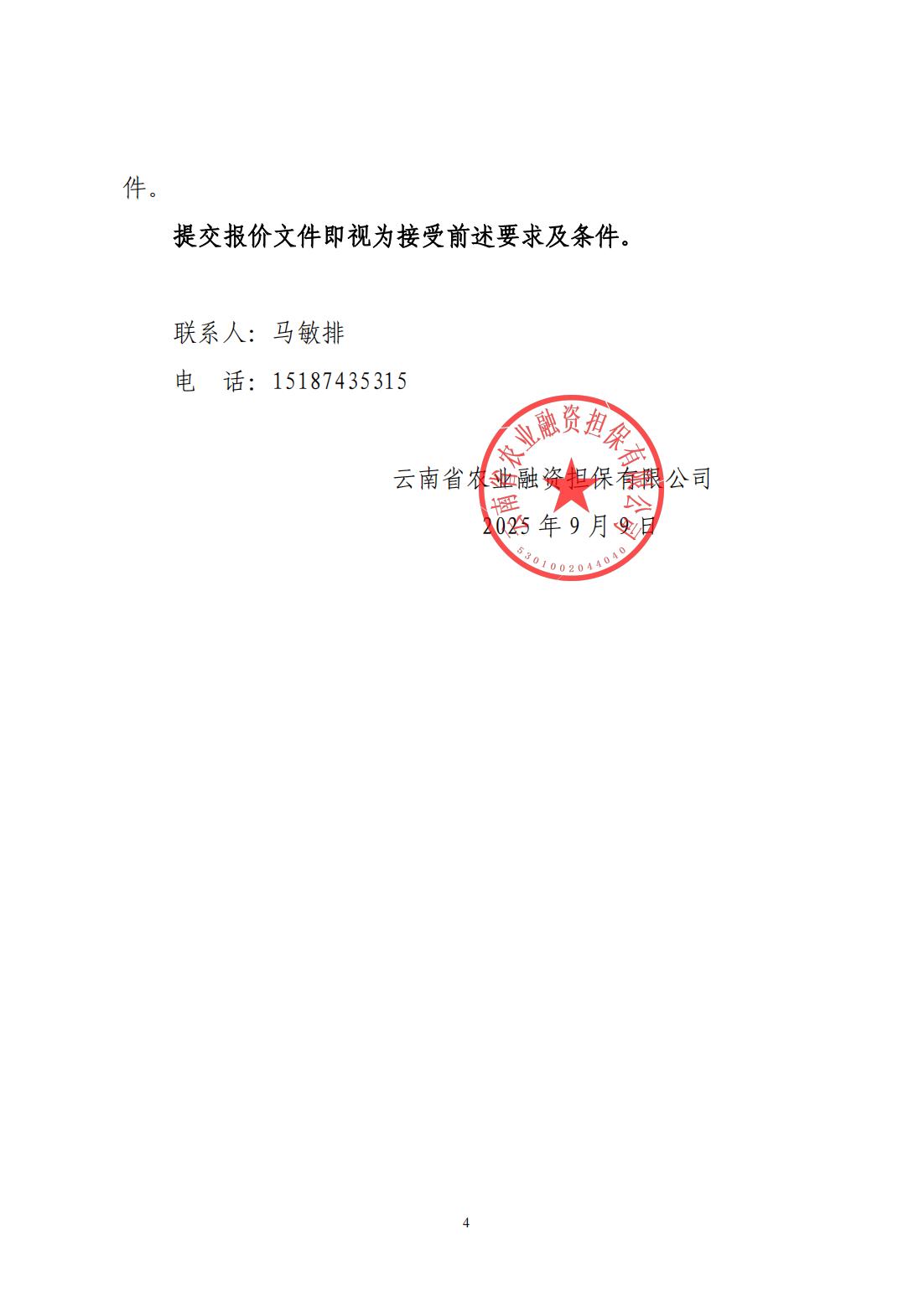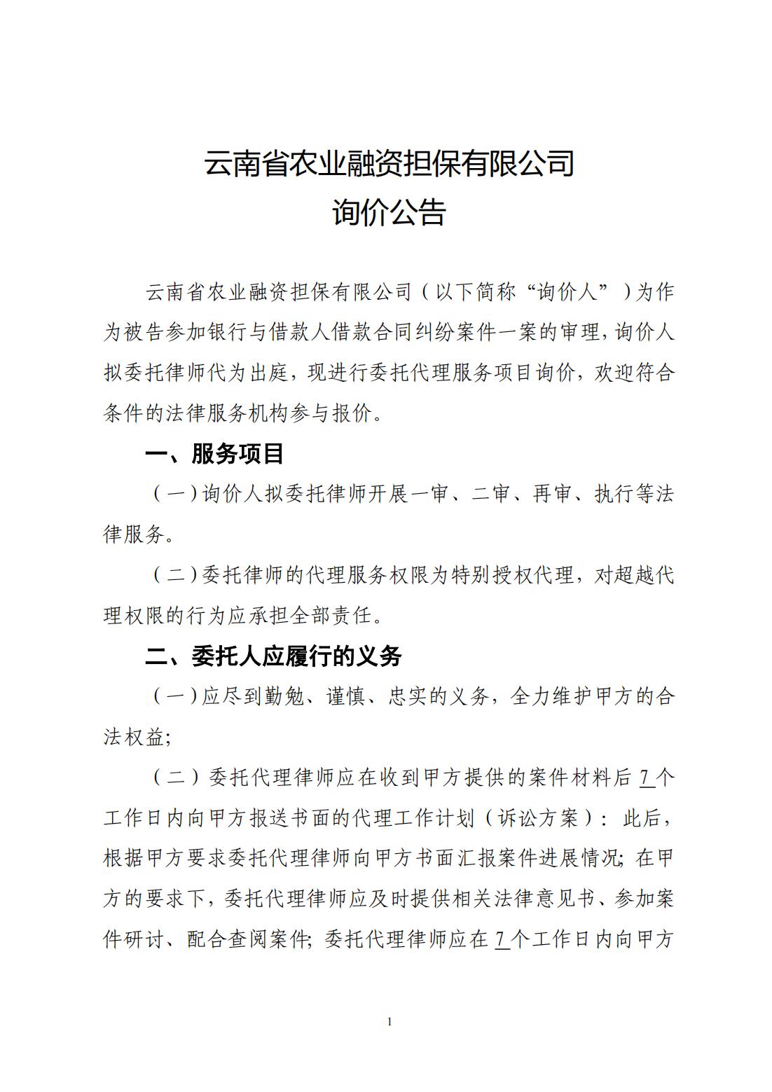 云南省農業(yè)融資擔保有限公司詢價公告