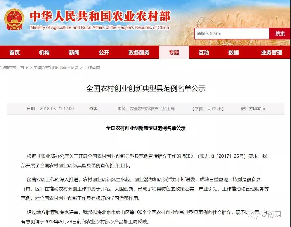 經(jīng)過地方推薦和專家評審,農(nóng)業(yè)農(nóng)村部擬將北京市房山區(qū)等100個全國農(nóng)村創(chuàng)業(yè)創(chuàng)新典型縣范例向社會推介,現(xiàn)予以公示。