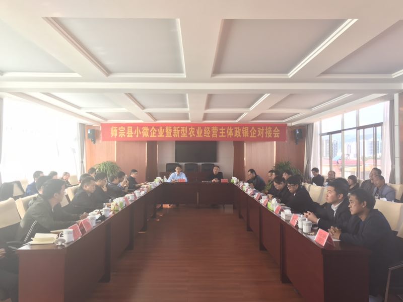 10月18日,曲靖辦事處受邀參加師宗縣新型農(nóng)業(yè)經(jīng)營主體暨小微企業(yè)金融工作服務(wù)推進(jìn)會。會議由師宗縣人民銀行行長岳濤主持,參會人員包括師宗縣副縣長張硯昆、曲靖市人民銀行中心支行副行長李琰、師宗縣財政局、發(fā)改局、農(nóng)業(yè)局、林業(yè)局、工信局、招商局等職能部門領(lǐng)導(dǎo)、師宗縣各金融機(jī)構(gòu)負(fù)責(zé)人以及當(dāng)?shù)匦滦徒?jīng)營主體代表。會議上,曲靖辦事處業(yè)務(wù)員陳俊對公司成立背景、政策、業(yè)務(wù)開展情況及師宗地區(qū)的業(yè)務(wù)開展情況、合作流程等相關(guān)事宜進(jìn)行了介紹。各銀行負(fù)責(zé)人對銀行貸款政策、存貸規(guī)模、帶動扶貧等情況進(jìn)行了介紹,當(dāng)?shù)匦∥⑵髽I(yè)代表就經(jīng)營情況進(jìn)行了介紹,并提出了企業(yè)融資過程中遇到的難題。隨后政、銀、擔(dān)、企就如何解決小微企業(yè)融資問題進(jìn)行探討,并要求各部門就相關(guān)政策及會議要求落實、落實、再落實!最后,張硯昆副縣長以及曲靖市人民銀行副行長李琰對本次金融推薦會給予了肯定并作出指示:各政府部門及各金融機(jī)構(gòu)要充分認(rèn)識小微企業(yè)的重要性,支持小微企業(yè)是全方位的,不單純的是金融支持,各部門要加大力度支持小微企業(yè)的發(fā)展壯大。本次會議提升了公司在師宗縣的知名度,為公司在師宗縣的業(yè)務(wù)擴(kuò)展打下了堅實的基礎(chǔ)。