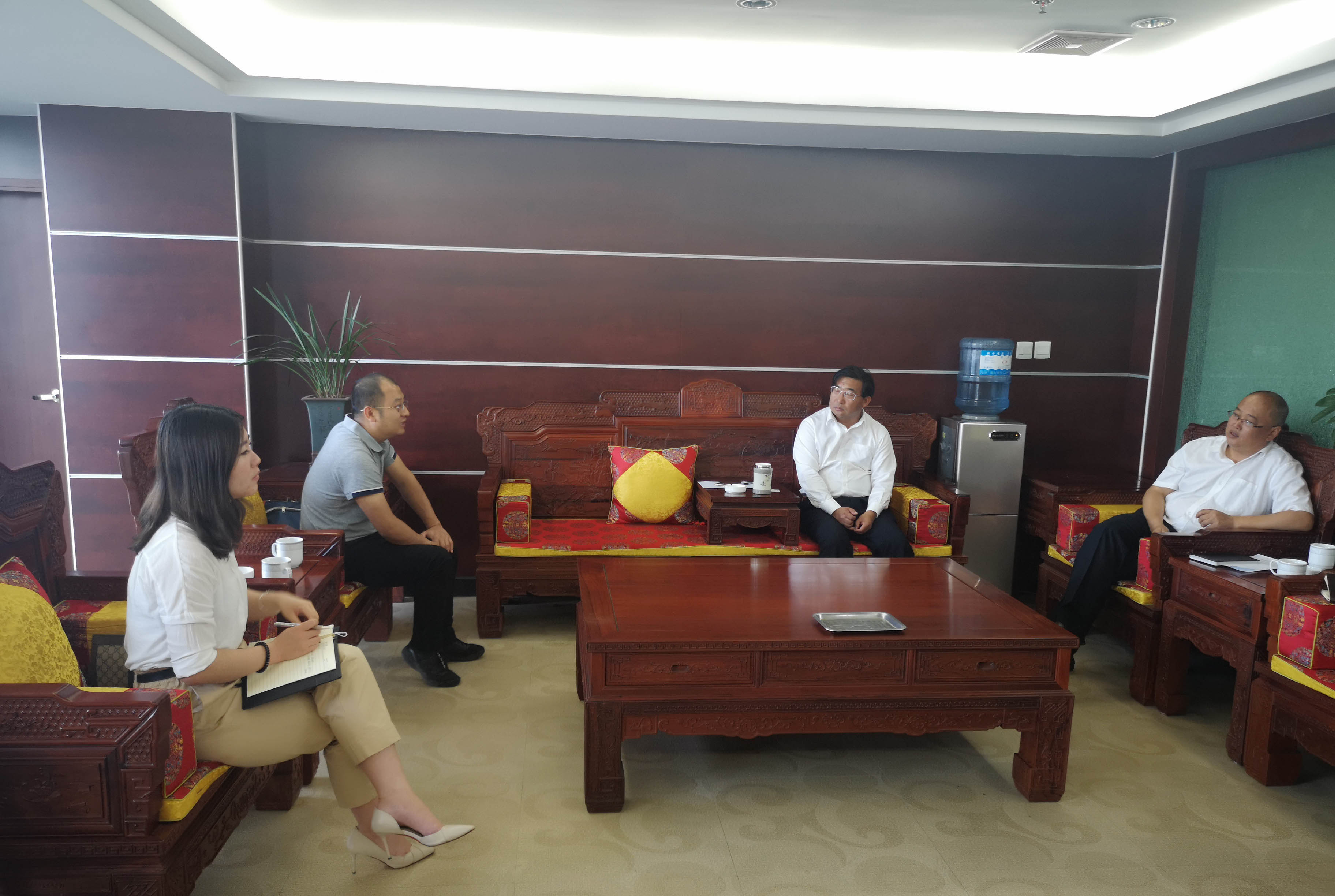 2019年5月7日,農(nóng)擔(dān)二部負(fù)責(zé)人賈萬文、保山辦事處業(yè)務(wù)主管胡幫露一行到騰沖農(nóng)村商業(yè)銀行開展座談會(huì),與騰沖農(nóng)村商業(yè)銀行董事長文文、公司業(yè)務(wù)部總經(jīng)理趙明興進(jìn)行了交流。