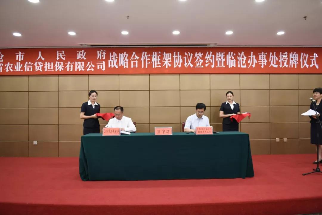 5月27日,臨滄市人民政府與云南省農(nóng)業(yè)信貸擔(dān)保有限公司戰(zhàn)略合作框架協(xié)議簽約暨農(nóng)擔(dān)臨滄辦事處授牌儀式在臨翔區(qū)舉行。臨滄市委副書記、市長張之政同志與省農(nóng)擔(dān)公司董事長郭影同志代表雙方簽訂《臨滄市人民政府與云南省農(nóng)業(yè)信貸擔(dān)保公司戰(zhàn)略合作框架協(xié)議》,并共同為農(nóng)擔(dān)臨滄辦事處授牌。