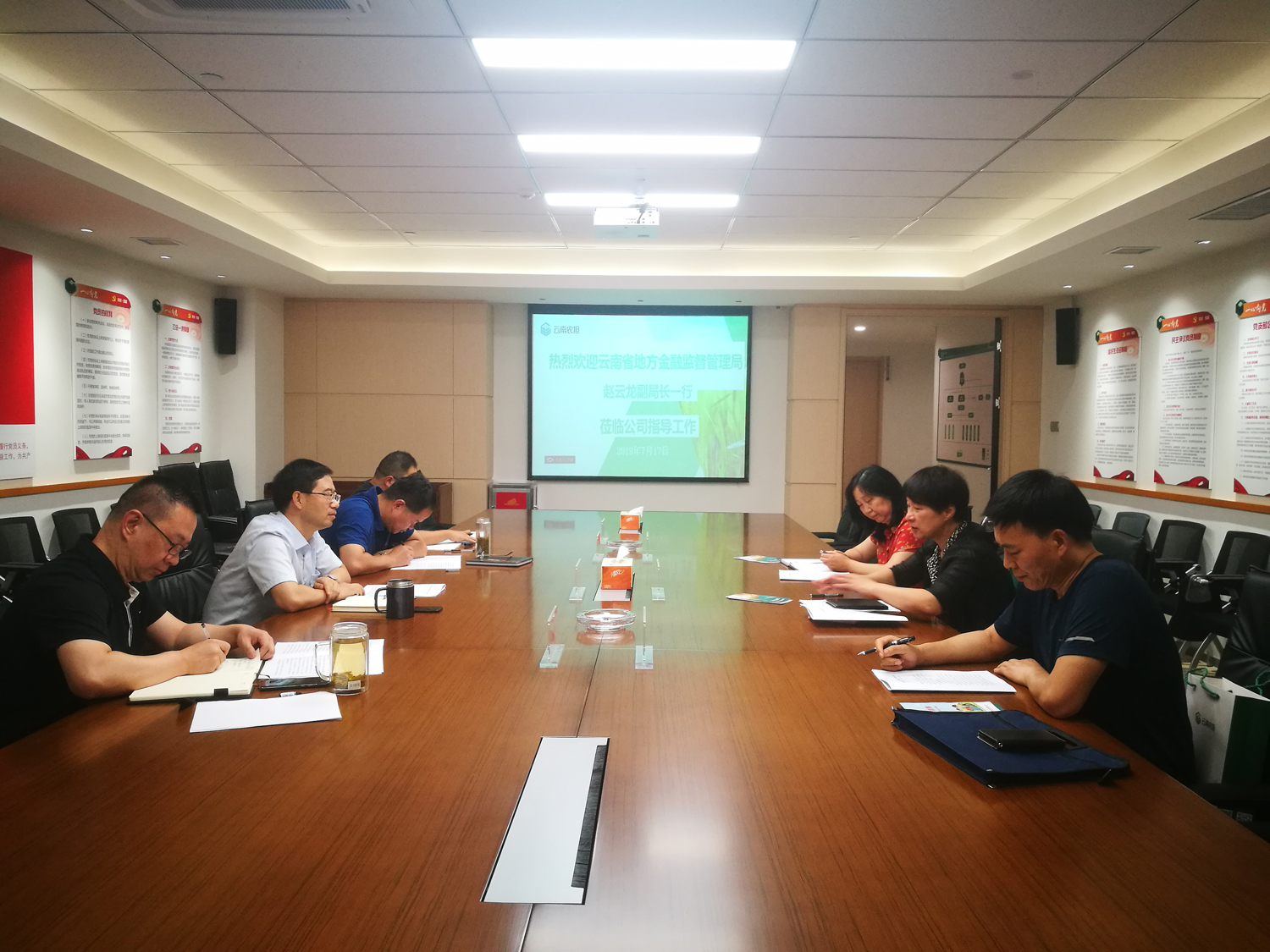7月17日,云南省地方金融監(jiān)督管理局趙云龍副局長一行到云南省農(nóng)擔(dān)公司進行調(diào)研座談,省農(nóng)擔(dān)公司郭影董事長、杜開波總經(jīng)理、廖寅皓副總經(jīng)理及相關(guān)業(yè)務(wù)部門參加了會議。雙方圍繞公司擔(dān)保業(yè)務(wù)工作的開展情況進行座談。