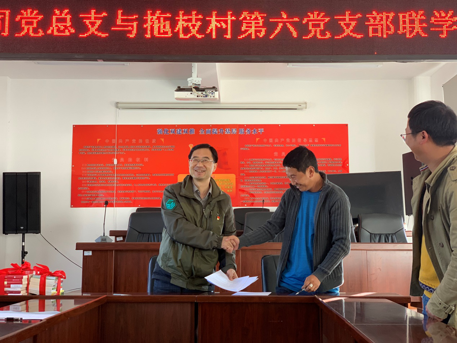 支部結(jié)對雙促進(jìn),共建共享強(qiáng)黨建。自公司黨組織成立以來,嚴(yán)格按照省財(cái)政廳機(jī)關(guān)黨委扶貧工作要求,農(nóng)擔(dān)公司黨(總)支部與永春鄉(xiāng)拖枝村第六黨支部開展了支部共建“雙一雙”學(xué)習(xí)教育、經(jīng)驗(yàn)交流,10月22日公司黨總支書記郭影與拖枝村第六簽訂了黨支部結(jié)對共建協(xié)議書,并捐贈(zèng)黨建和農(nóng)業(yè)科技方面讀書,把黨建工作與精準(zhǔn)扶貧工作相結(jié)合,充分發(fā)揮農(nóng)擔(dān)公司黨組織全心支農(nóng)、為農(nóng)、惠農(nóng)、不脫農(nóng)的先鋒模范作用,以黨建推動(dòng)脫貧攻堅(jiān),以脫貧攻堅(jiān)促進(jìn)支部黨建,促進(jìn)了扶貧工作與黨建工作的良性互動(dòng)。