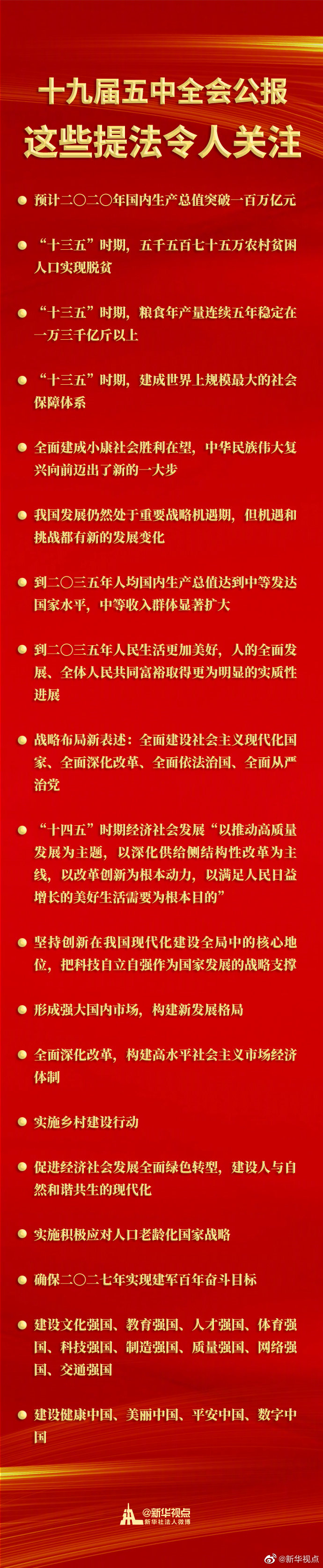 面向未來,全會及其通過的建議擘畫了中國未來5年以及15年的發(fā)展新藍(lán)圖,宣示了以習(xí)近平同志為核心的黨中央帶領(lǐng)全黨全國各族人民同心同德、頑強奮斗,奪取全面建設(shè)社會主義現(xiàn)代化國家新勝利的堅定決心。