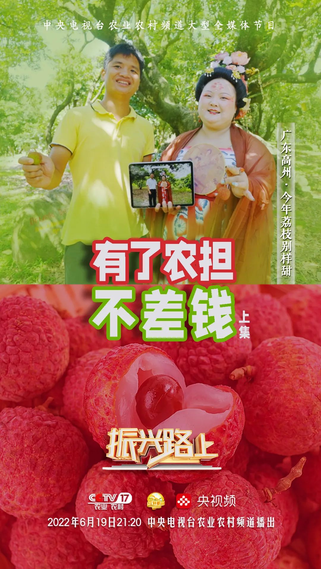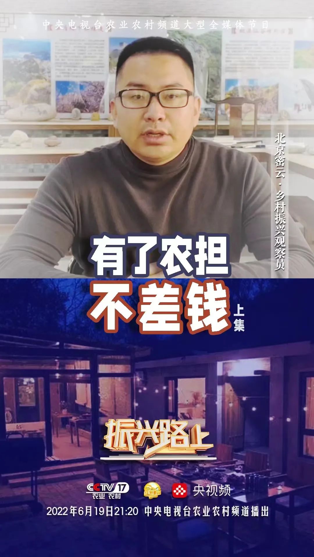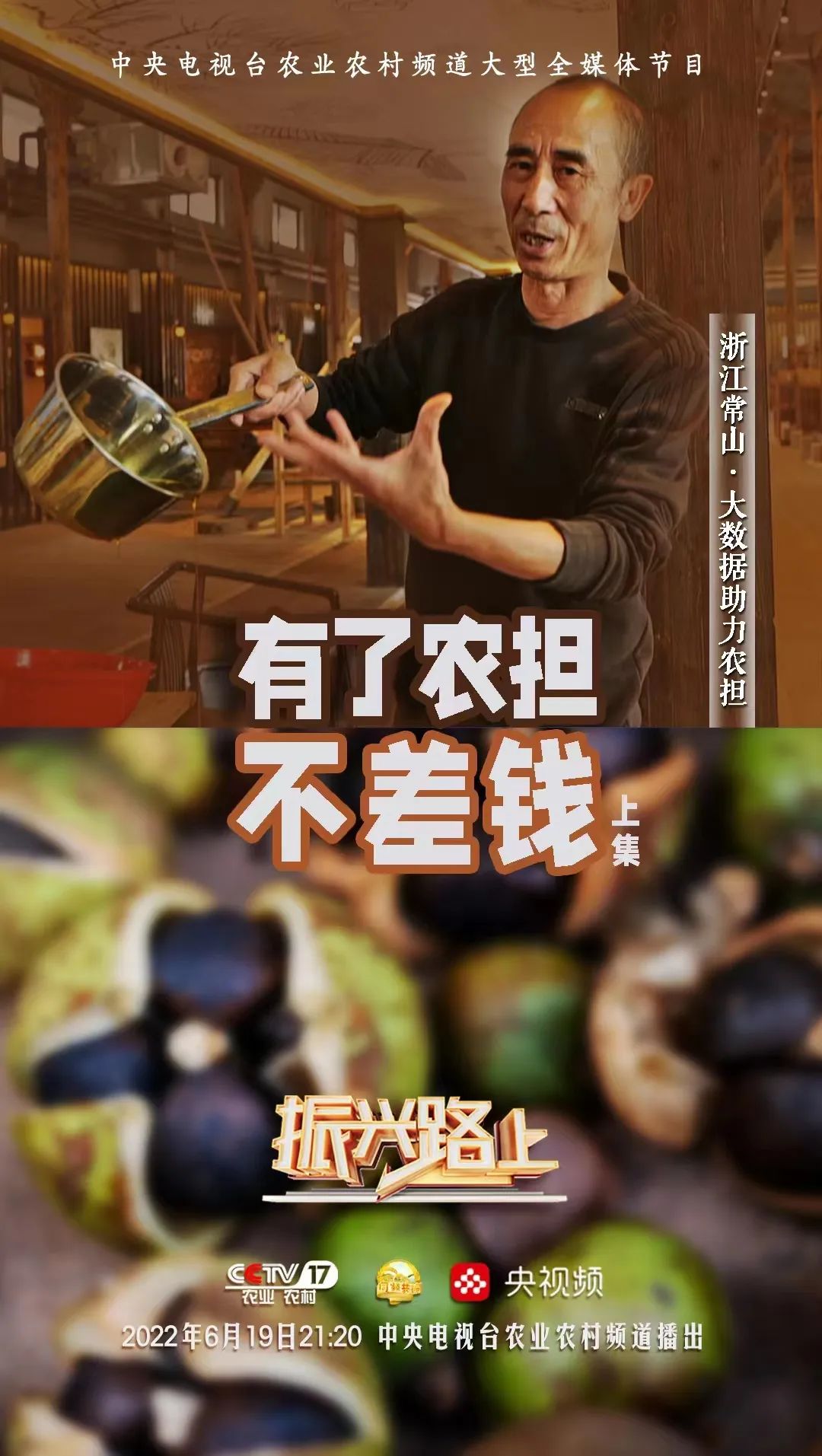 在農(nóng)業(yè)農(nóng)村部計(jì)劃財(cái)務(wù)司的指導(dǎo)下,由中央廣播電視總臺(tái)農(nóng)業(yè)農(nóng)村頻道(CCTV-17)大型全媒體欄目《振興路上》與國家農(nóng)擔(dān)公司特別策劃《有了農(nóng)擔(dān)不差錢》(上下集),歷經(jīng)4個(gè)月精心策劃、跨越八省實(shí)地拍攝、后期剪輯與制作工作,現(xiàn)將分別于6月19日與6月26日21:20在CCTV-17農(nóng)業(yè)農(nóng)村頻道與央視頻同步播出,屆時(shí)將讓全國觀眾認(rèn)識(shí)不一樣的農(nóng)擔(dān)人、感受“兩腳泥、曬黑臉、睡地板”的農(nóng)擔(dān)精神。